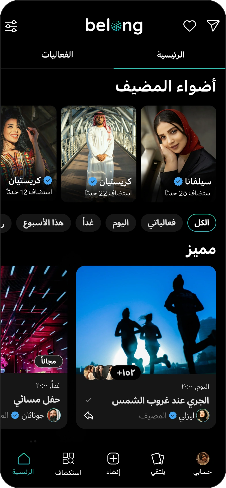 التوصيات المخصصة للمجموعات والفعاليات دقيقة للغاية. أنا أحب تطبيق ينتمي!