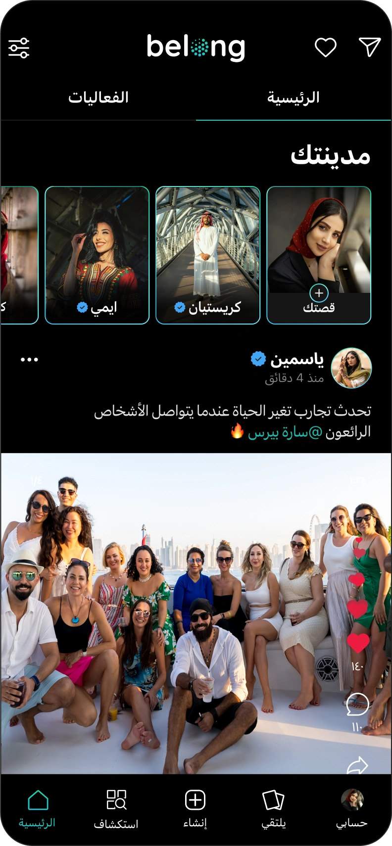 شاهد ما يحدث حولك، مع محتوى مُختار خصيصًا لك. قصص، فعاليات وأشخاص تجعل مدينتك تشعر وكأنها بيتك.